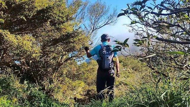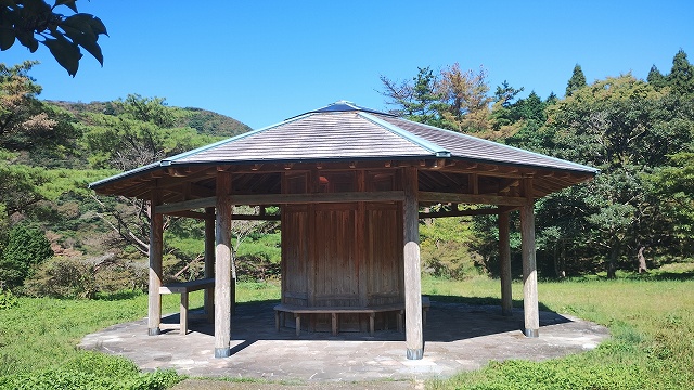 雲仙ゴルフ場横の池ノ原園地内の東屋まで下りてきたところ。