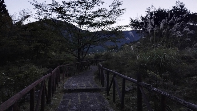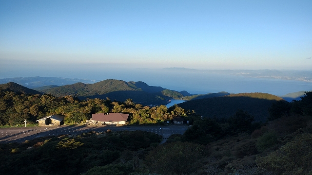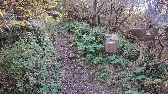 循環道路は解放時刻前なので閉じていて8時まで通行できない。なので、池ノ原園地の方から歩いて登ることにします。