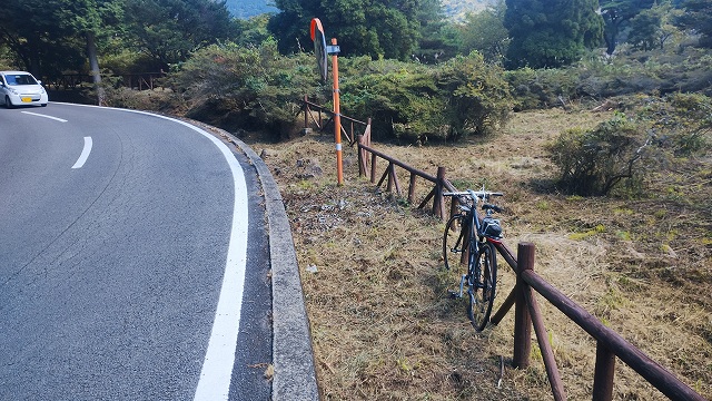 こんなところに自転車を置いて仁田峠へ向けて登ります。