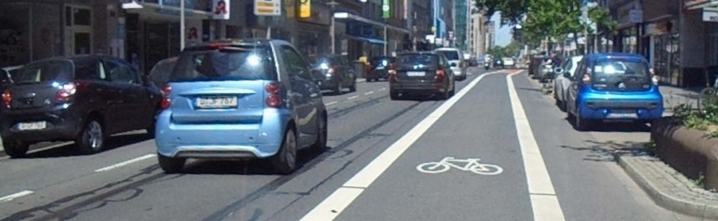 町にはいっても、このとおり自転車専用レーンが用意されています。