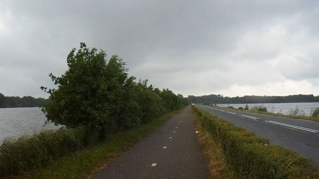 こんなかんじの道路です。N403号。湖の中を細く走っている道路