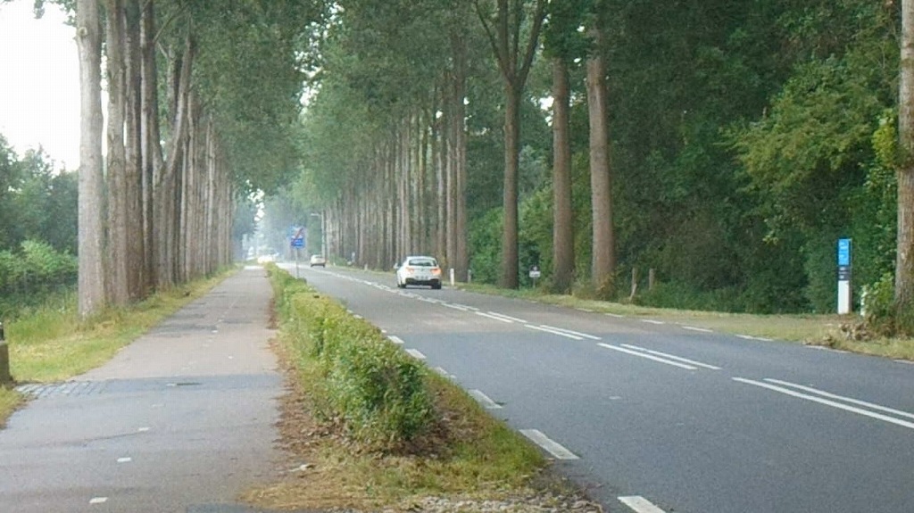 ちいさな運河に沿って走る、きれいな道です。