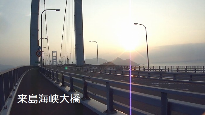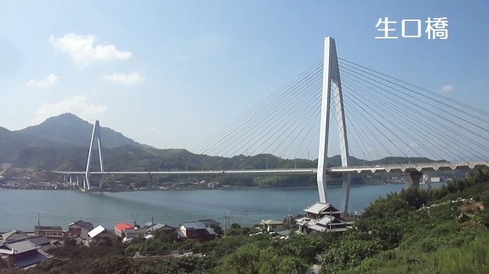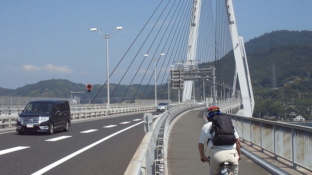 尾道〜向島間は一般道である尾道大橋または船で渡り、因島大橋は高速道路の下を原付・自転車・歩行者が通行するようになっています。多々羅大橋、大三島橋、伯方・大島大橋、来島海峡大橋は原付と自転車・歩行者の道に分かれて高速道路の脇を走っています。