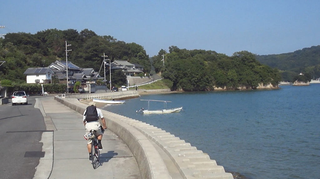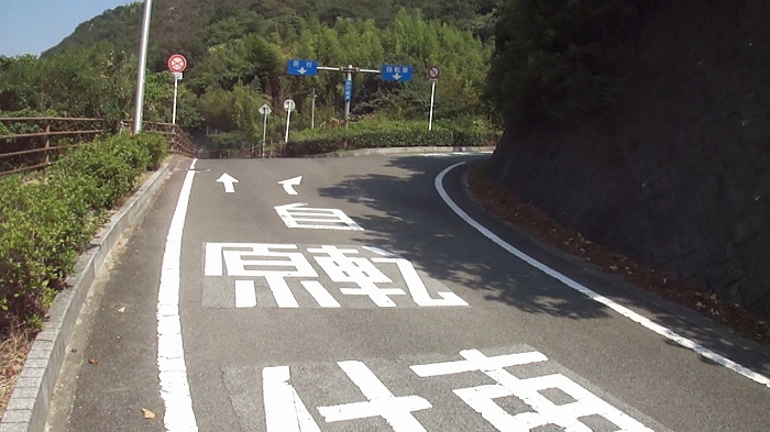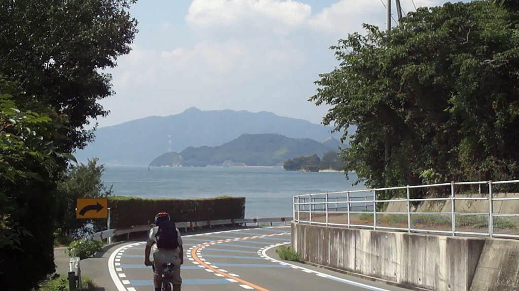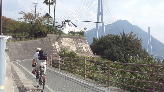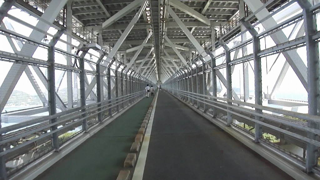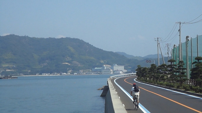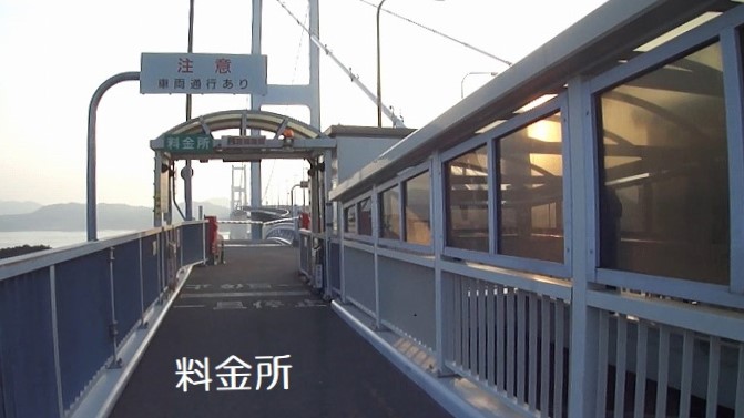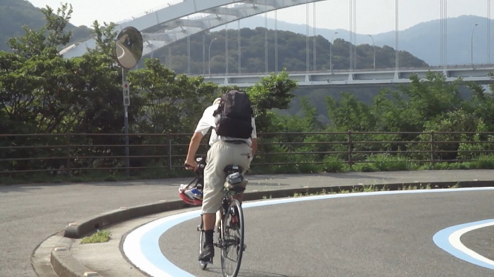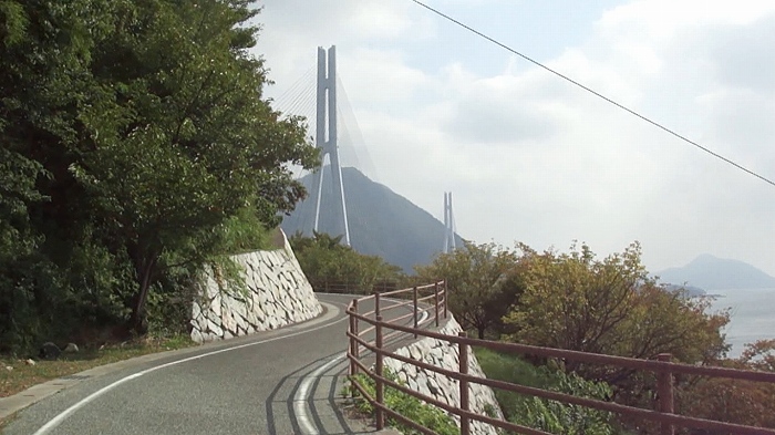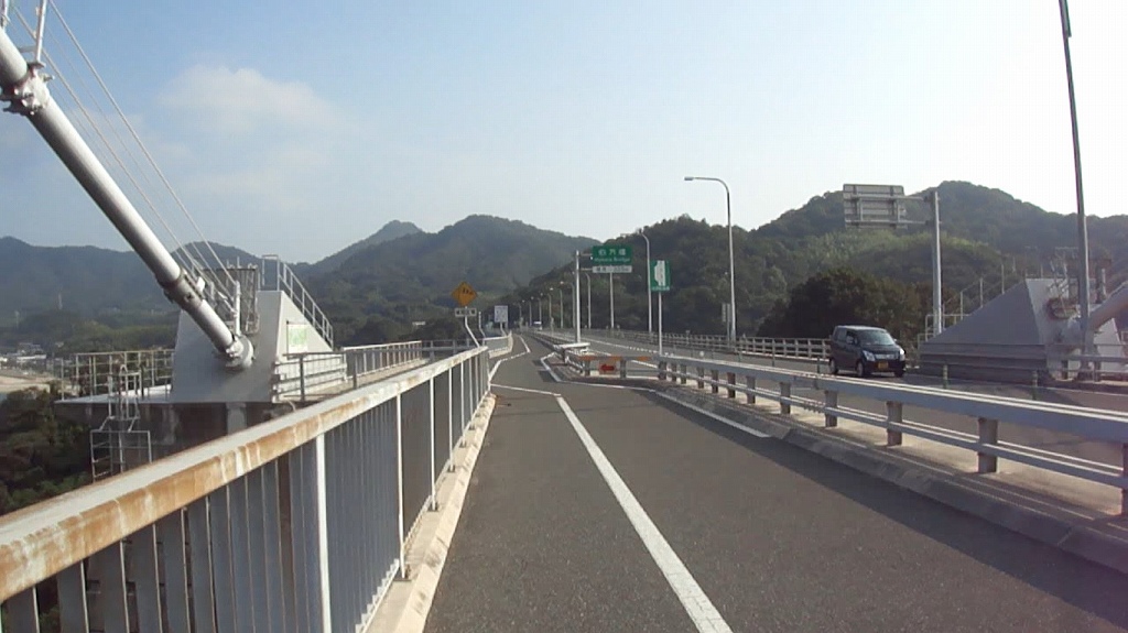 7つの橋のうち因島大橋は自動車道路の下を、その他の橋は自動車道路の脇の専用道路を走ることができます。原付と自動車が左右に分かれています。