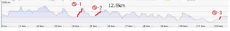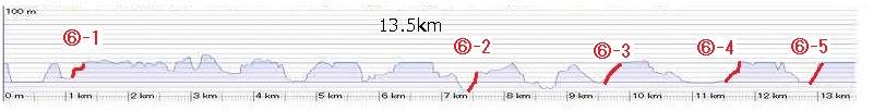 (6)-3は千年の交差点から上までの坂です。(6)-5は市民プラザ通りのファミマ横から上までの坂です。
