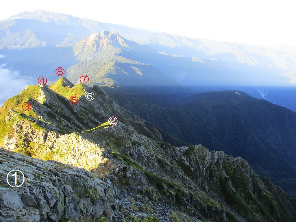 今は4峰にいる。振り返って見て左から8峰、7峰、5峰。