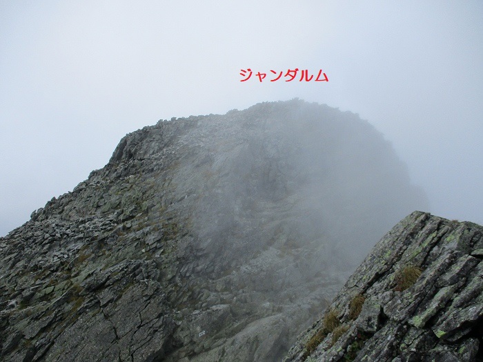ジャンダルムに登る場合、西穂高側から登ると、登りやすいので、ずんずん上って行きますと、どこでも登れる。霧のあるときなどは、間違いやすい。間違ったルートの場合、突然登れなくなる。そこで「しまった」と思って下ろうとすると、これがなかなか難しい。気を付けましょう。