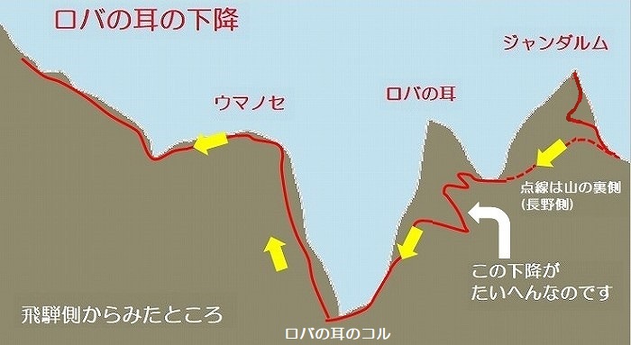 さあ、ロバの耳の下りです。大キレットよりも、ここがいちばんの難所だと聞いておりました。