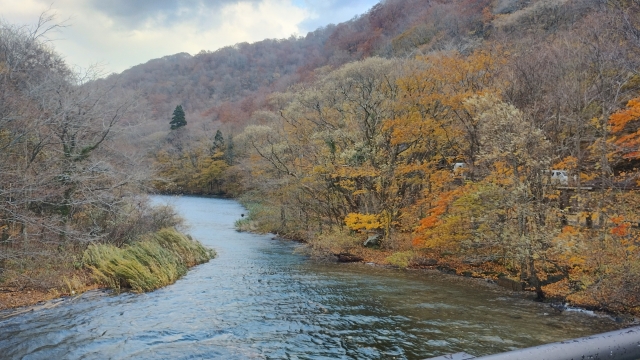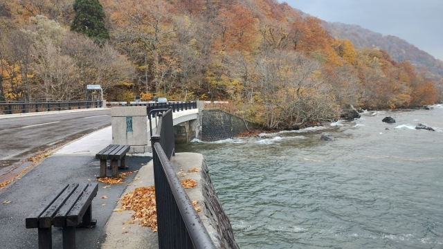 十和田湖子ノ口橋 渓流はここから始まります。