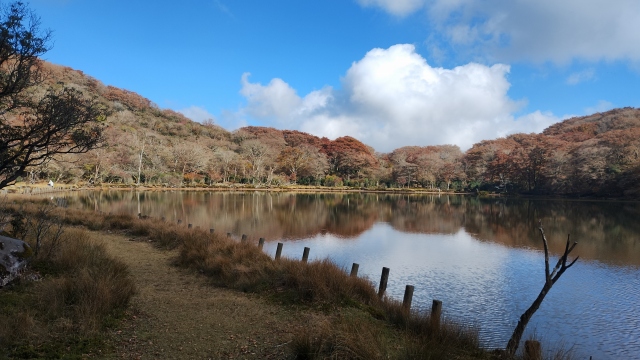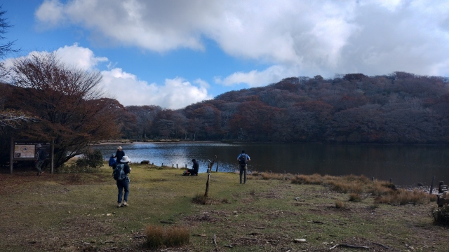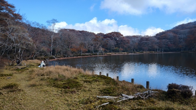 火口湖と考えられていましたが、最近の調査で断層湖であることがわかった。池の周囲が八丁(約870m)