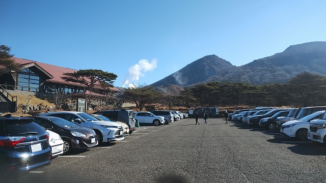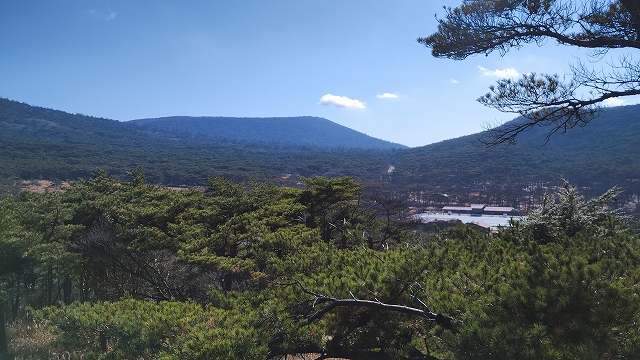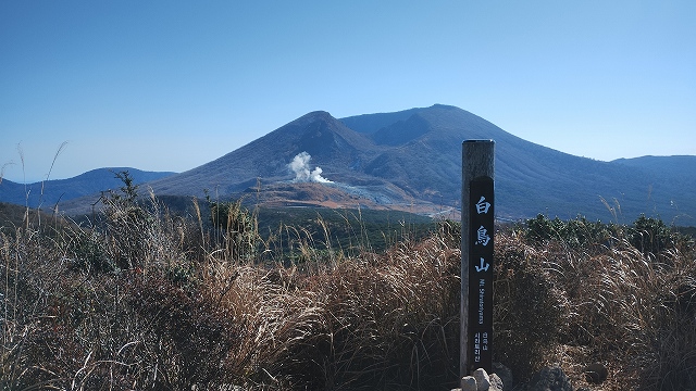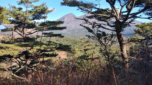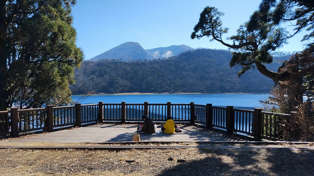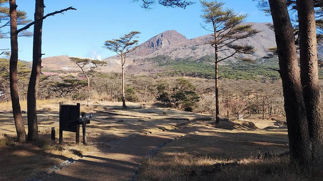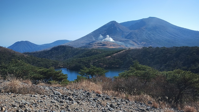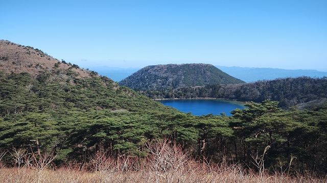 えびの岳展望台まで登ってきましたが、火口窪地は見えない。